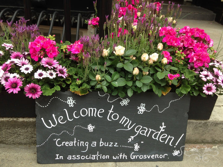 To support "Creating a Buzz," and In response to increasing demand from our Belgravia residents, we have introduced a new service : to create bespoke window boxes, hanging baskets or patio containers however large or small, with bee-friendly flowering plants to match any colour palette or style desired. We introduced this service during the recent Chelsea Flower Show with our "Belgravia in Bloom" street display at The Flower Lounge where we installed window boxes and a "living wall" of a variety of plants ranging from Lavender for the bees, Geraniums for colour, Roses for the scent, Grasses for texture and Osteospermum for that extra chic !