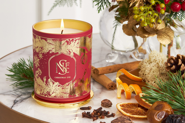 Christmas Eve captures the warmth and nostalgia of the most magical night of the year. The glow of candlelight, the hum of carols, and the scent of spiced oranges, cinnamon-dusted treats, and evergreen branches fill the air, wrapping the home in festive joy. Clove and orange peel evoke holiday preparations, while cinnamon and dried fruit recall indulgent feasts. A deep base of pine, oakmoss, and musk mirrors the presence of a beautifully adorned Christmas tree. Steeped in tradition, Christmas Eve is a fragrance of cherished memories and timeless celebration.