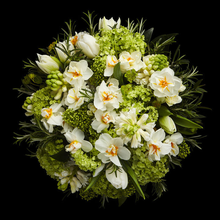 Exceptionally chic and sophisticated, our Grosvenor range of designs for Easter offers an elegant display of white flowers with green and silver-grey foliage.