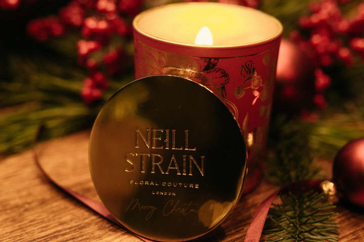 Discover the magic of Christmas at home with Neill Strain Floral Couture’s trio of luxurious festive fragranced candles. Hand-poured using our natural wax blend and perfume-grade oils, each scent fills your home with warmth, elegance and seasonal nostalgia. New for 2025, our exclusive engraving service allows you to personalise each candle’s gold lid with a name, date or heartfelt message - transforming a beautiful fragrance into an unforgettable Christmas keepsake.