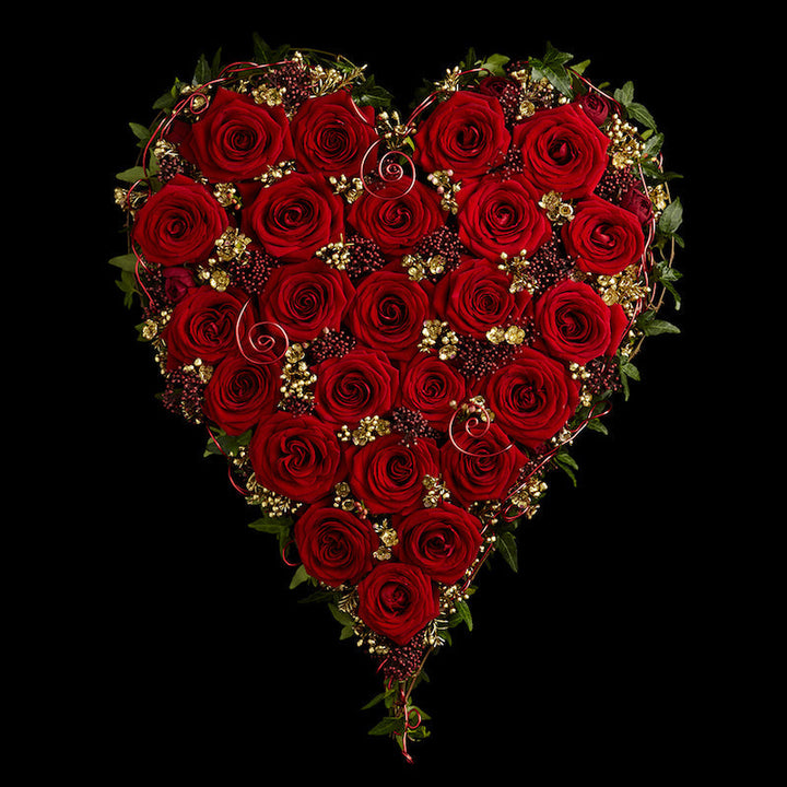 New this year is the Red Rose Heart. Painstakingly hand-crafted by our team, the intricately wired heart frame is filled with 18 or 24 Red Naomi Roses, Skimmia and golden Wax flower. With the subtle scent of these enchanting Roses, what could be more romantic than to receive this gift of floral art.